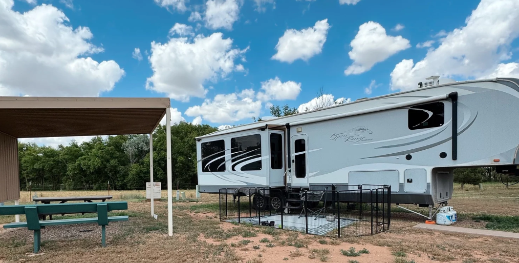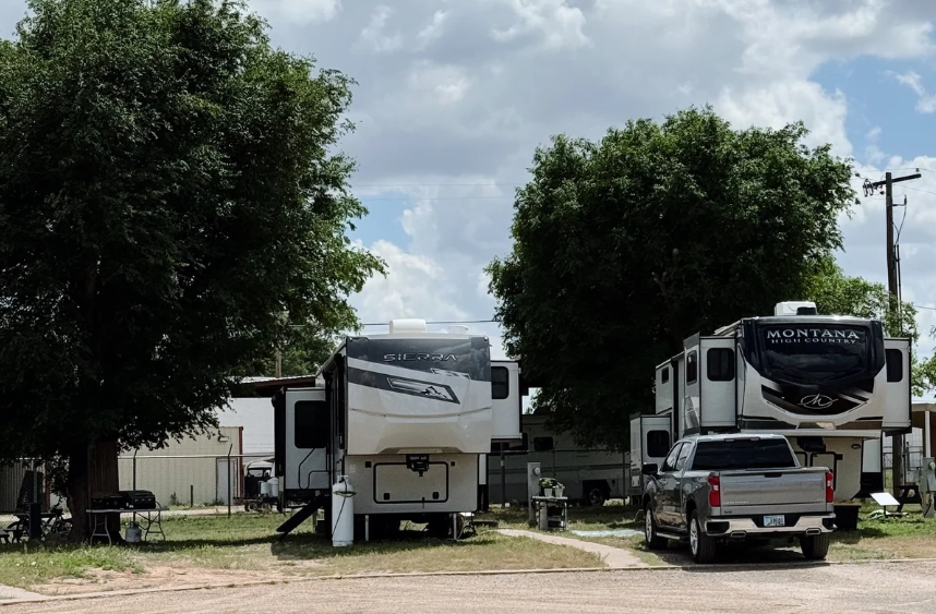 RV Park offering 24 Hour Commercial Laundry Service, Onsight Propane & Drop Off Station, 27/7 Private Shower Facility, Dog Run & Walk Services and cable Box Rental. We are the premier facility on the Northside of Clovis. The RV Park is a quiet retreat away from the noise trains, airplanes and highways but close to restaurants and shopping centers in Clovis. We are the best choice fro those looking for the privacy and comfort of home in their temporary housing. We have 30 + 50 amp sites, 64 spacious sites, concierge services and 911 Services.