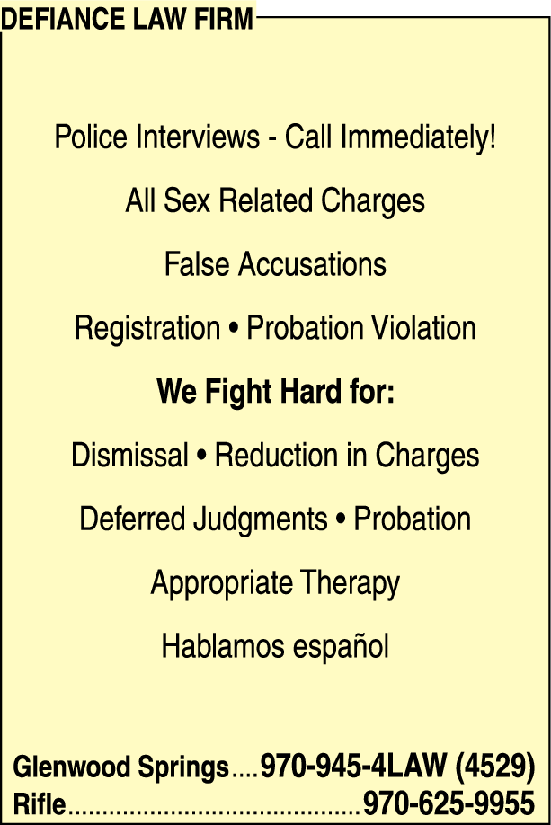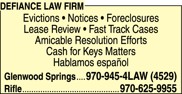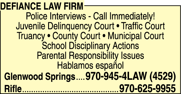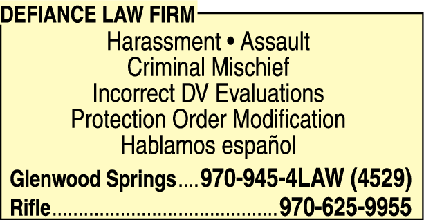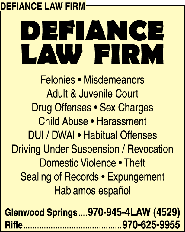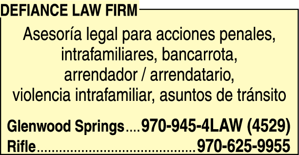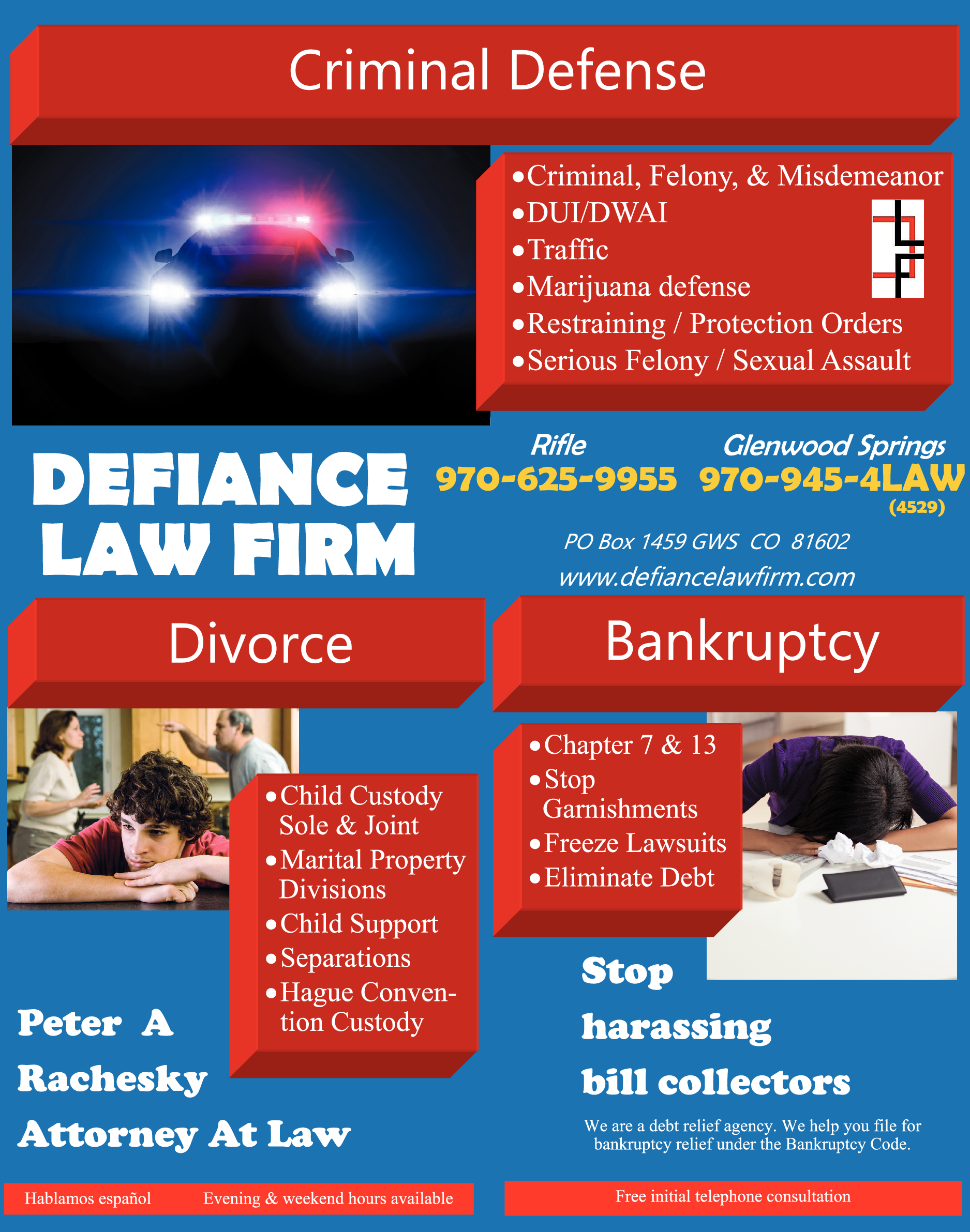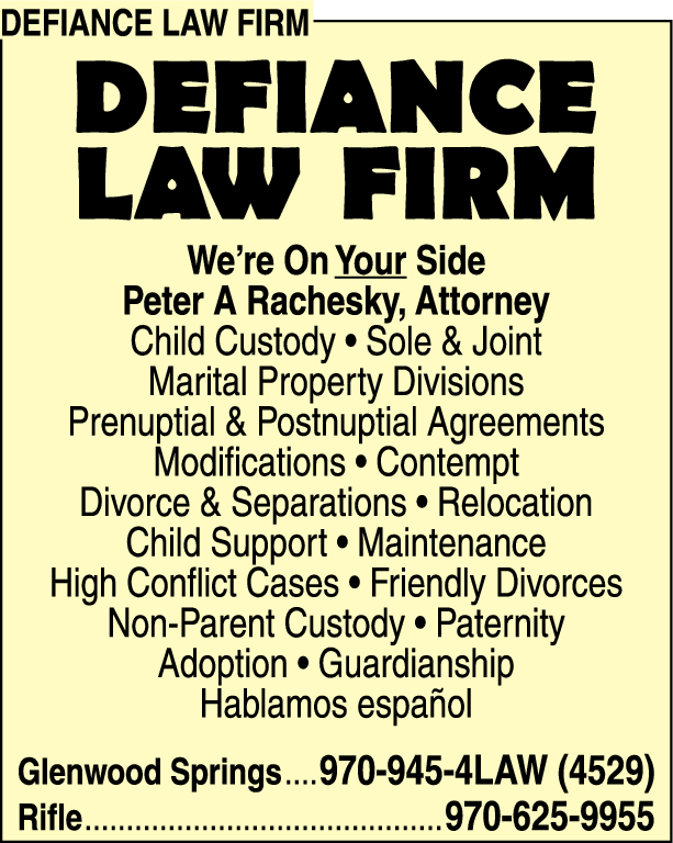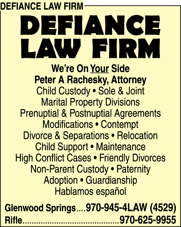 Defiance Law Finn is a reputable legal establishment in Glenwood Springs, specializing in criminal defense, bankruptcy, and family law. 'With a team of skilled attorneys led by Peter A. Rachesky, they provide comprehensive legal services to their clients in English and Spanish.
