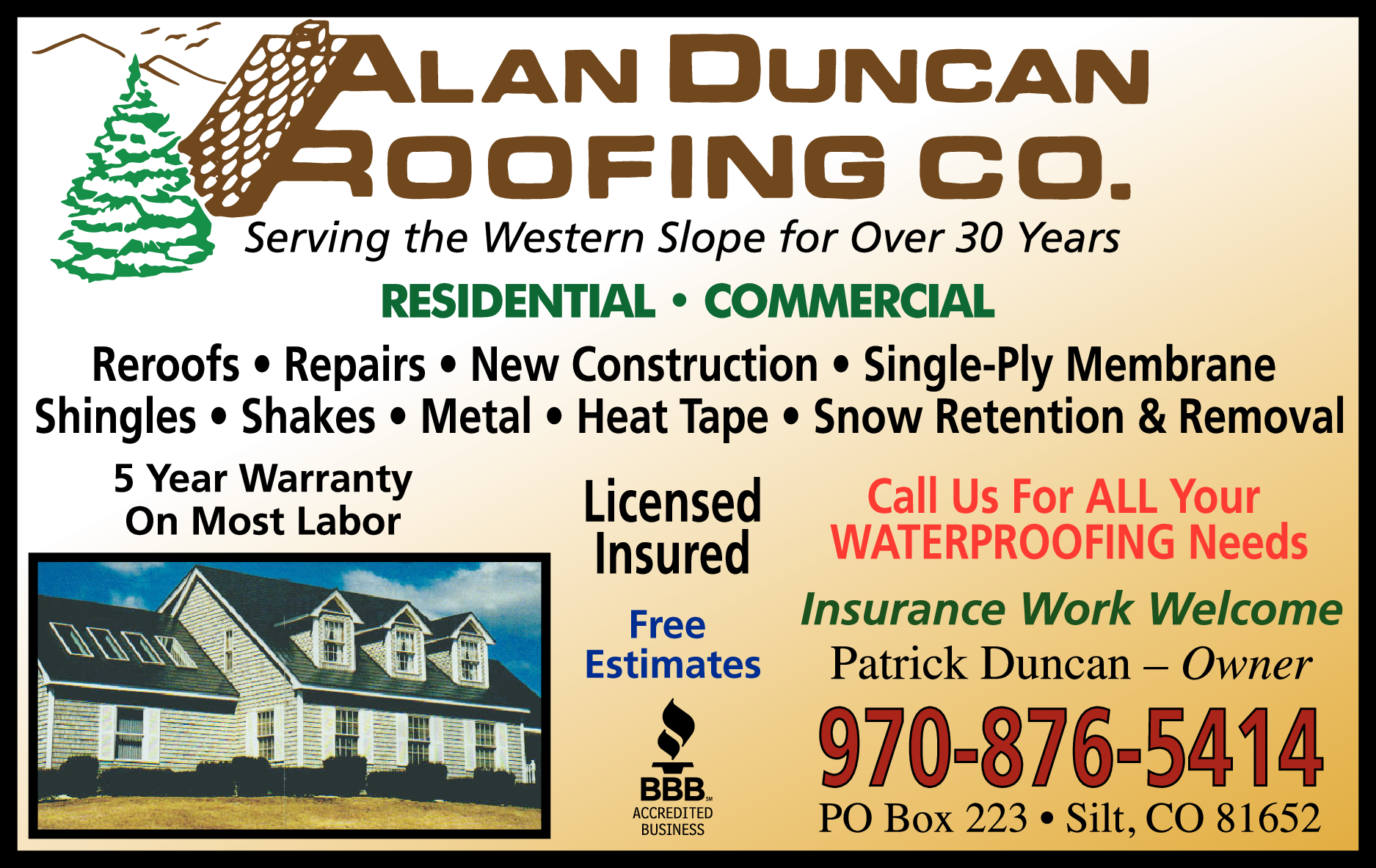 Alan Duncan Roofing Co. provides top-quality roofing services, specializing in repairs, replacements, and new installations. Serving Rifle, New Castle, Silt, Glenwood Springs,