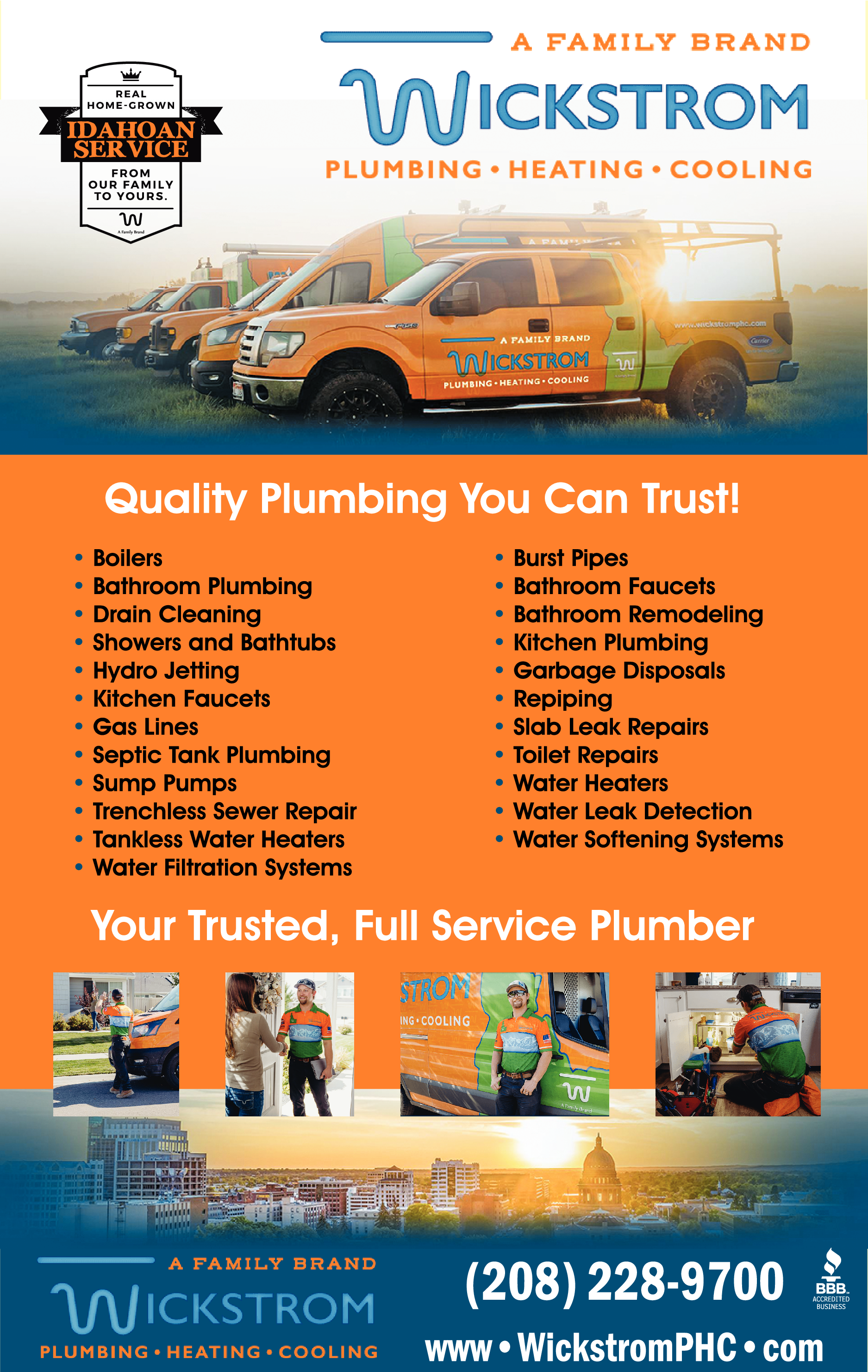 Wickstrom Plumbing, Heating & Cooling, "Your trusted Home-Grown Idahoan Family Company" has been proudly serving the McCall, Cascade, Donnelly, Caldwell, Nampa, Meridian & Boise area since 1992!