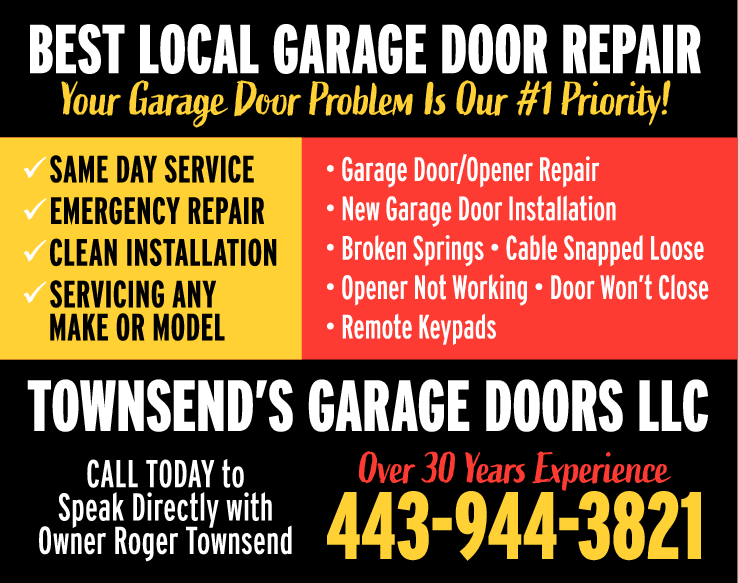 Don't let a malfunctioning garage door inconvenience you any longer, contact Townsend's Garage Doors LLC today at 443-944-3821 for the best local garage door repair services.
