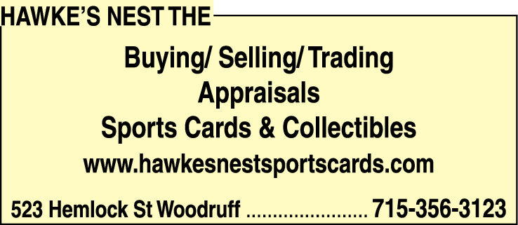 Full array of boxes, supplies and singles. Vintage & New Baseball, Football, Basketball, Hockey, mixed sports and sealed Pokemon product! Autographed sports memorabilia and Rare Vintage Green Bay Packer memorabilia! Buying/Selling/Trading with Free Appraisals available. Stop in for our endless sports talk or the organic box break, box war or pack ripping fun!