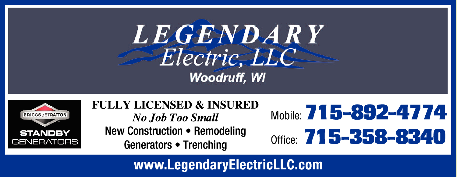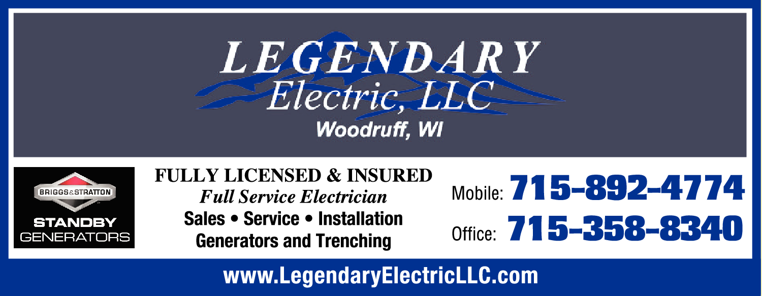 Legendary Electric, LLC is a fully licensed and insured electrical company based in Woodruff, WI. We specialize in providing top-quality electrical services for both residential and commercial properties. As an authorized dealer of Briggs&Stratton, we offer a comprehensive range of electrical solutions, including sales, service, and installation of standby generators. Our team of skilled electricians is experienced in handling all aspects of generator installation, ensuring that our customers have a reliable backup power source during outages. In addition to our generator expertise, we also specialize in trenching services, providing efficient and precise excavation for various electrical projects. Our mobile service is available for emergency repairs and maintenance, ensuring that our customers receive prompt assistance whenever they need it. To learn more about our services or to schedule a consultation, please contact our office at 715-358-8340 or reach us directly at 715-892-4774. Trust Legendary Electric, LLC for all your electrical needs.
