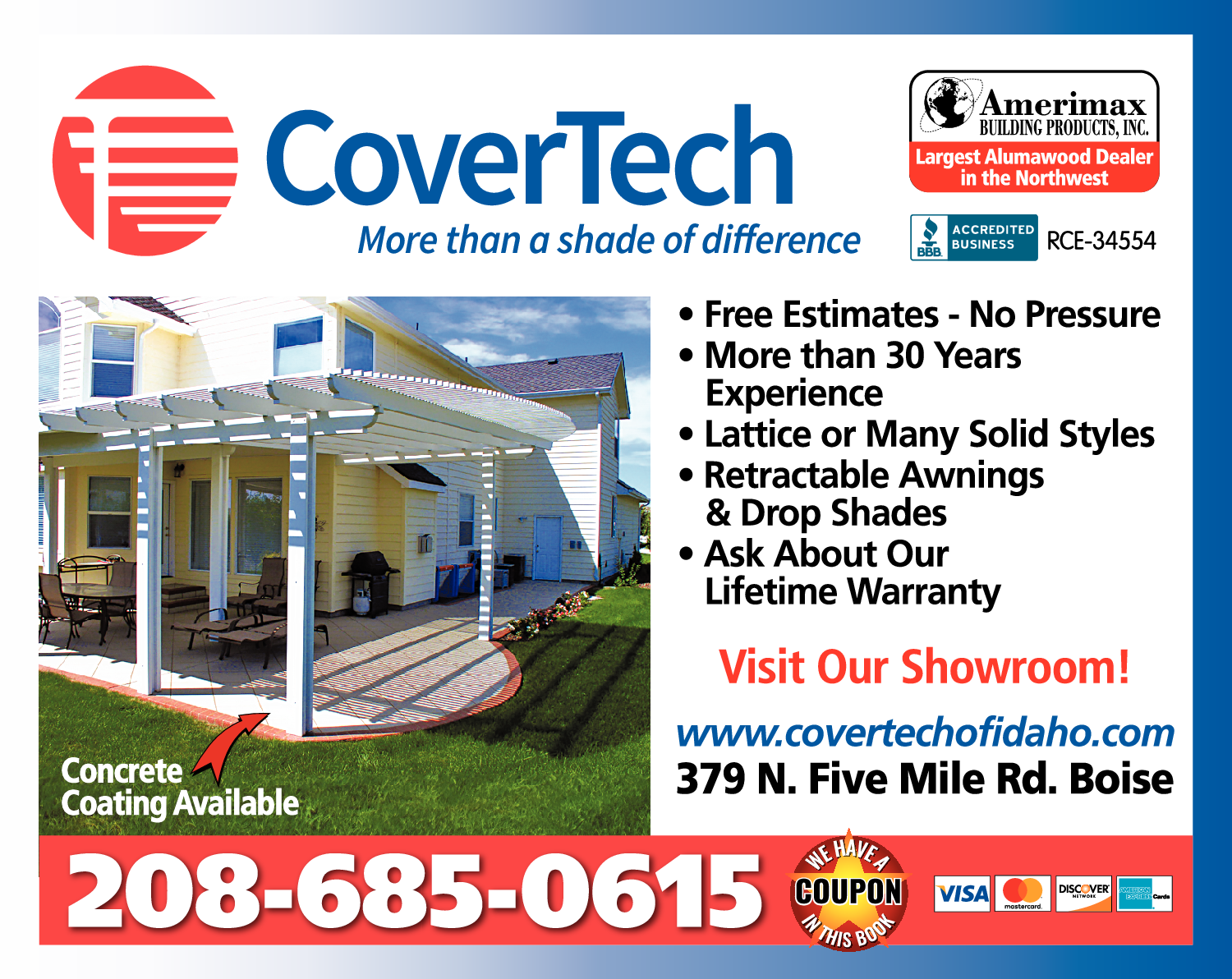 Trusted in the Treasure Valley for nearly 20 years, we help you beautify your outdoor living spaces with patio covers, shades, awnings, carports and concrete overlays. Our team members stand ready to craft a custom solution for your needs.