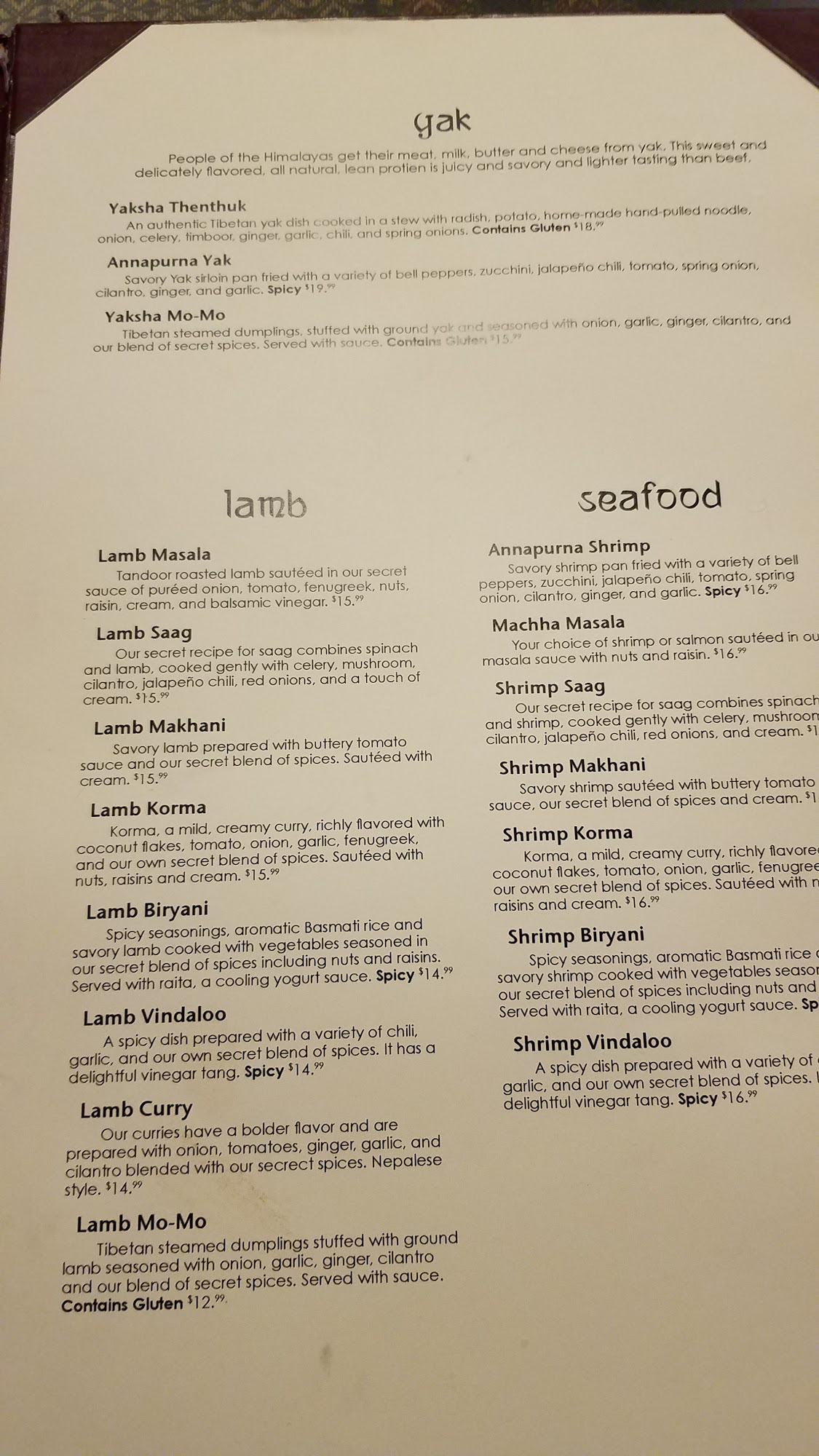 Our Story , accepts android pay , yak stew , himalayan food , chicken tikka masala , menu , casual, classy , free wi-fi , sekuwa , full bar , accepts credit cards , quiet , good for groups , good for kids , good for lunch, dinner , dine-in , street parking , wheelchair accessible , bike parking , takes reservations , vegan options , Contact , many vegetarian options , accepts apple pay , Lunch Buffet , authentic , tibetan food , offers catering , Online Order