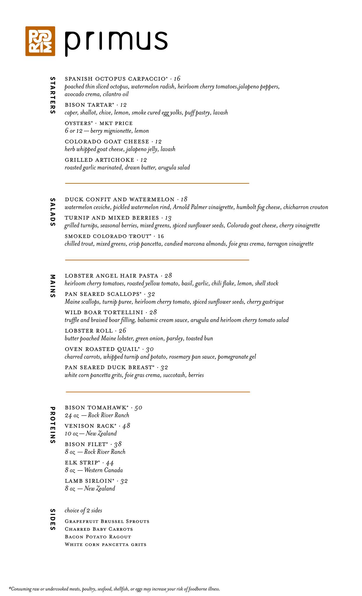 seafood, decadent desserts, cocktails and wine. Primus restaurant is