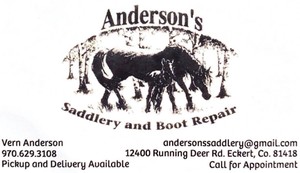 Anderson's Saddlery Custom Boots & Repair is open Wednesday, Thursday, Friday, Saturday.