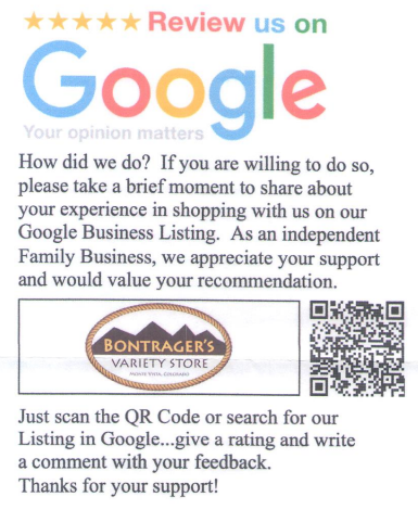 Family owned and operated, Bontrager’s Variety Store is a one-stop shopping destination that has customers returning, again and again, whenever they are in Monte Vista Colorado area.