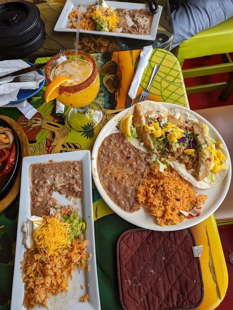 moderate noise , Navajo Tacos , Full Bar , Free Wi-Fi , Chipotle sour cream , accepts credit cards , shrimp enchiladas , chili rellenos , Vegan options , refried beans , kid friendly , Mexican food , offers catering , gender-neutral restrooms , limited vegetarian options , serves alcohol , street parking , touristy, casual , bike parking , takes reservations , Guacamole , Dine-In , Lettuce , good for lunch, dinner , TV , Cilantro rice , good for groups , Black beans , good for kids , Pico de gallo , fry bread