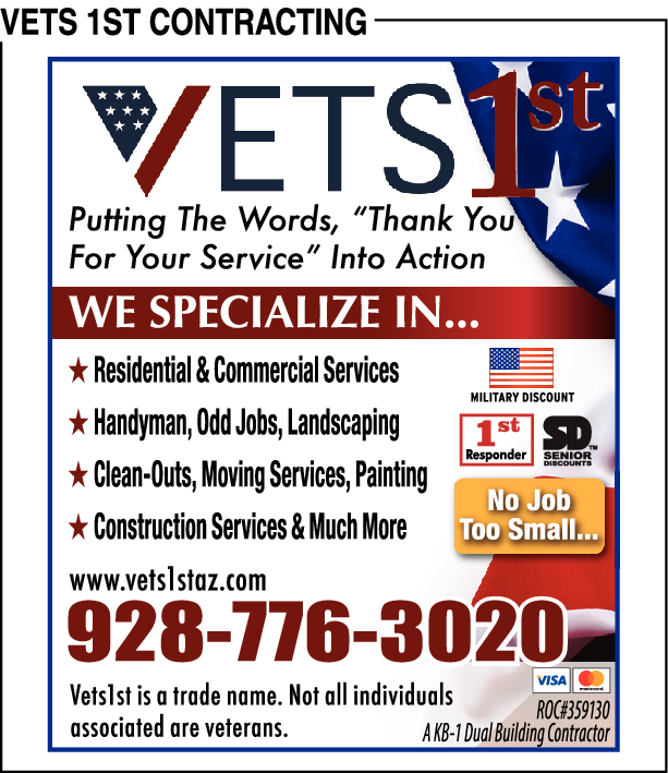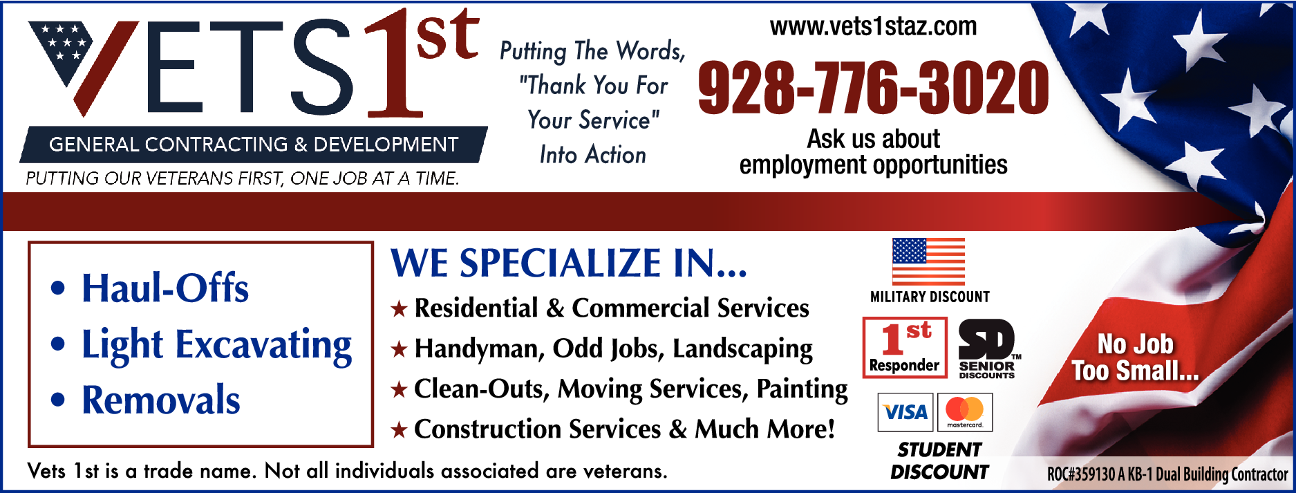 Vets 1st of Arizona is a local contracting and construction company dedicated to serving both the veteran population and the civilian community. We offer construction services while empowering the veteran community through contracting work. Our goal is to hire and employ veterans who possess the necessary skills and are interested in pursuing careers in construction.
