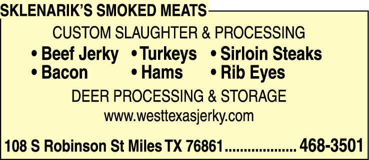 Welcome to WestTexasJerky.com, the Internet Store for Sklenarik's Smoked Meats, Inc. We are a USDA Inspected & HACCP Approved meat processing facility. We have the best Jerky and Smoked Meats that Texas has to offer. Whether you like it hot or not, we've got it!