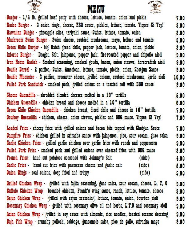 Iron Horse Grille is open Monday, Tuesday, Wednesday, Thursday, Friday.