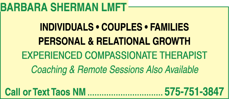 Barbara Sherman LMFT is a dedicated and experienced therapist specializing in personal and relational growth. With a compassionate approach, she provides effective therapy services to individuals, couples, and families. Barbara offers a range of sessions, including coaching and remote sessions, to meet the diverse needs of her clients. Whether you are seeking therapy for yourself or your children, Barbara Sherman LMFT is ready to guide you towards a path of healing and self-discovery. To schedule an appointment, please contact 575-770-8268.