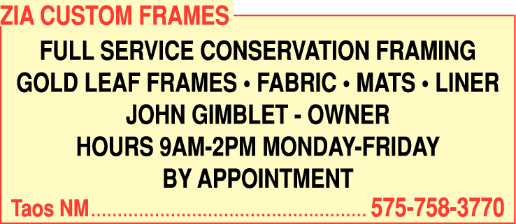 Zia Custom Frames is a premier framing business located in Taos, NM, specializing in providing top-quality, full-service conservation framing solutions. With our expertise and commitment to preserving and enhancing artwork and valuable objects, we offer a range of framing options to meet the unique needs of our discerning clients.