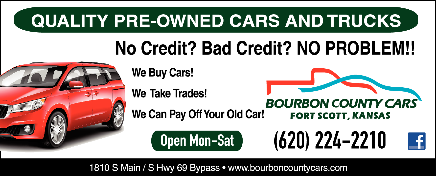 Find your next car at Bourbon County Cars in Fort Scott, KS, We want your vehicle! Get the best value for your trade-in!