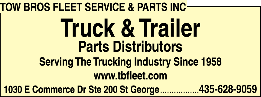 To learn more about our products and services, visit our website at www.tbfleet.com or give us a call at 435-628-9059. Join the many satisfied trucking companies that have trusted TOW BROS FLEET SERVICE & PARTS INC for their truck and trailer parts needs since 1958.