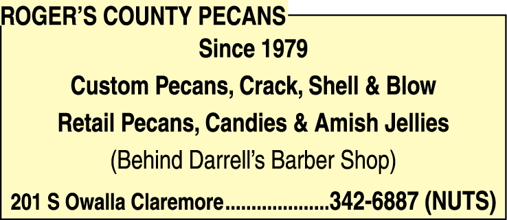 Roger's County Pecans is a family-owned business that has been operating since 1979. Located behind Darrell's Barber Shop at 201 S Owalla, the business specializes in offering a wide range of high-quality, custom pecans. From cracking and shelling to blowing, the dedicated team at Roger's County Pecans ensures that each pecan is prepared to perfection. In addition to pecans, the business also offers a delightful selection of retail pecans, candies, and Amish jellies. Whether you are a pecan enthusiast or looking for a unique and delicious gift, Roger's County Pecans is the go-to destination for all your nutty cravings.