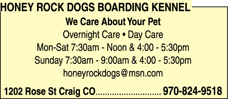 HONEY ROCK DOGS BOARDING KENNEL is the premier destination for pet owners in Craig, CO, seeking reliable, loving, and professional pet care. Trust us to care for your pet like they were our own.