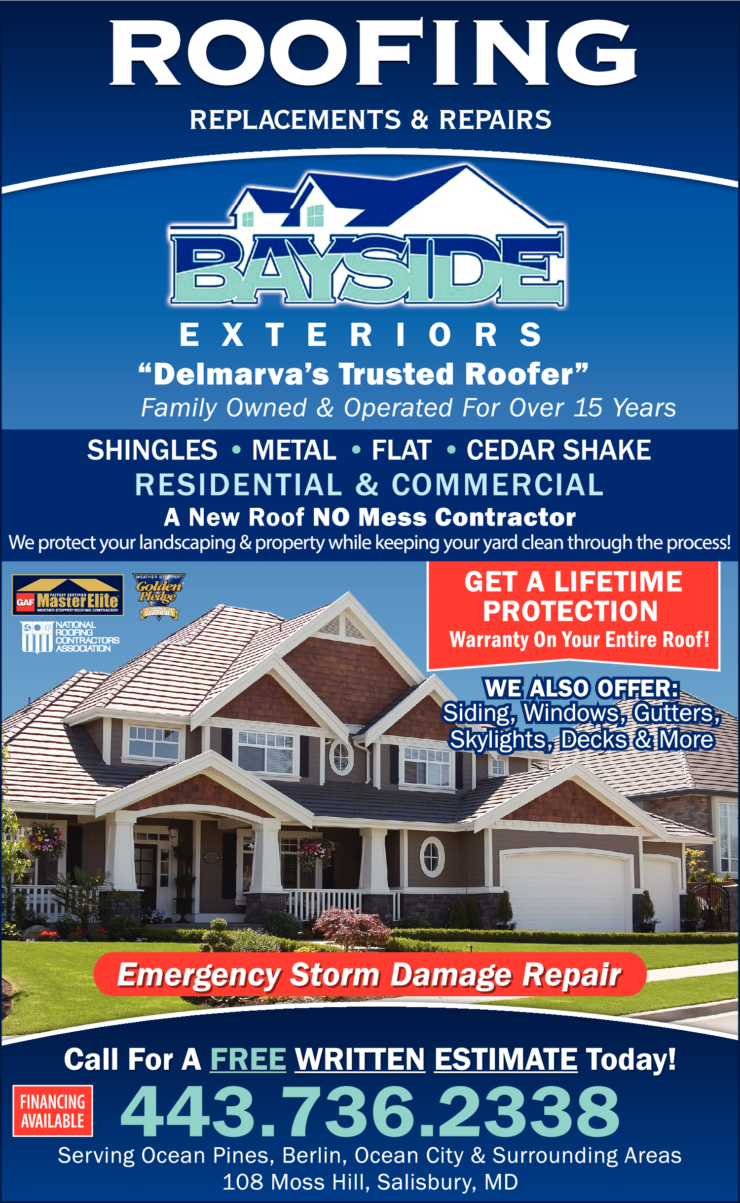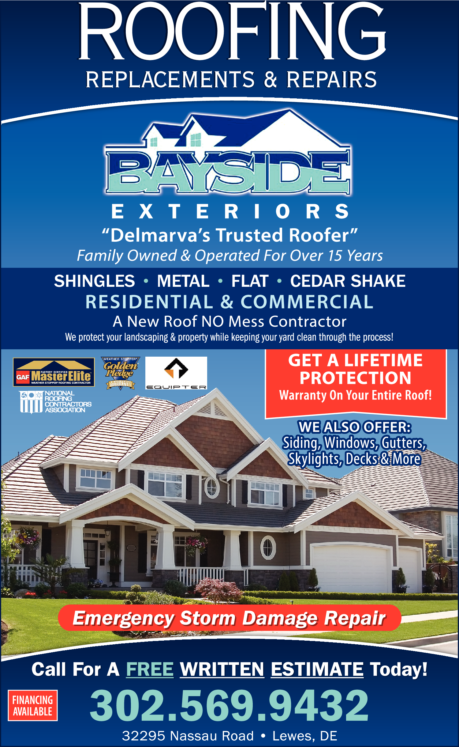 Bayside Exteriors is a family owned and operated roofing contractor in Lewes, DE. You can rely on our many years of experience in the industry to find a solution for your specific roofing needs. We offer high quality products, but most importantly, professional roofing services. Complete services are available in both Delaware and Maryland and we are a GAF Certified Master Elite Contractor that offers a lifetime protection warranty on your entire roof system.