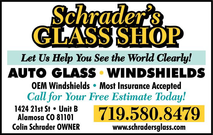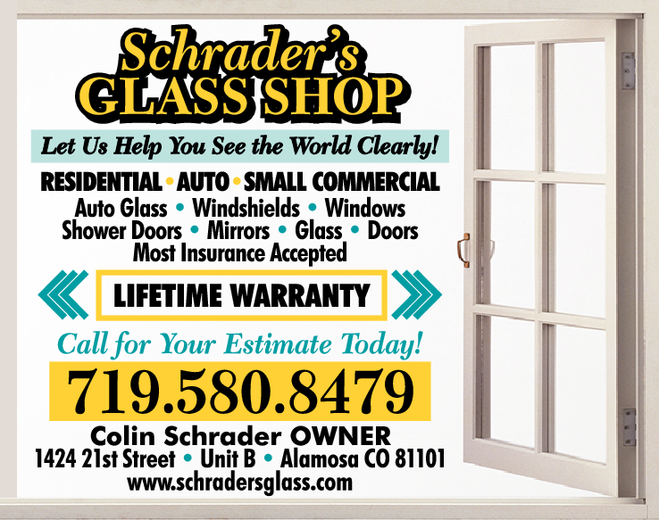 Names and Numbers Verified Automobile Glass Doors - Glass Glass - Automobile, Plate, Window, Etc MirrorsGlass Company Serving Alamosa, CO and Surrounding Areas From auto glass repair and replacement to residential glass, Schrader's Glass has been synonymous with quality glass for Alamosa, CO. Colin, the owner of Schrader's Glass has over 20 years experience in the glass industry.…