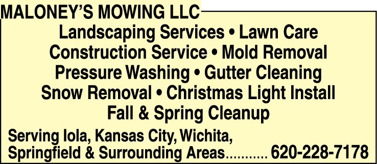 Names and Numbers Verified Christmas Lights & Decorations General Contractors Gutters & Downspouts - Cleaning Lawn Care & MaintenanceMaloney's Mowing Llc. Company specialized in: Christmas Lights & Decorations. Call us for more - (620) 228-7178
