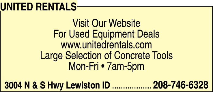 Names and Numbers Verified Contractors' Equipment & Supplies - Renting & Leasing Rental Service Stores & Yards Rentals Contractors EquipmentYour Lewiston Equipment & Tool Rentals Partner United Rentals is your go-to rental company for equipment and tools. We offer a fleet of top-tier earthmoving machines, such as skid steers to help with construction projects or backhoes that are perfect for roadside work. In addit…