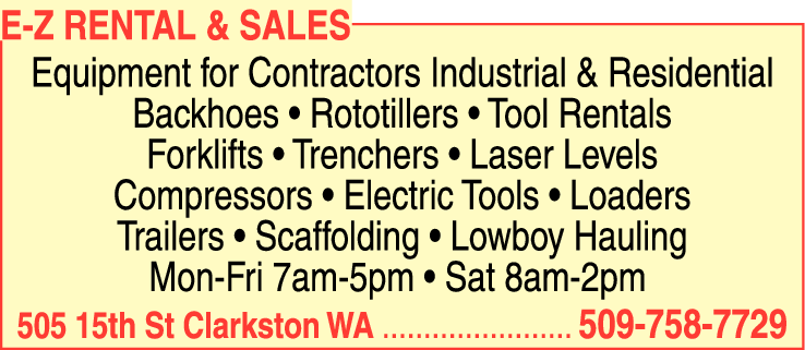 Names and Numbers Verified Contractors' Equipment & Supplies - Renting & Leasing Rental Service Stores & Yards RentalsEZ Rental & Sales is a leading provider of equipment and tools for contractors, industrial businesses, and residential customers. With a wide range of equipment available for rent or sale, we cater to all types of projects and industries. Our inventory includes trenchers, laser …