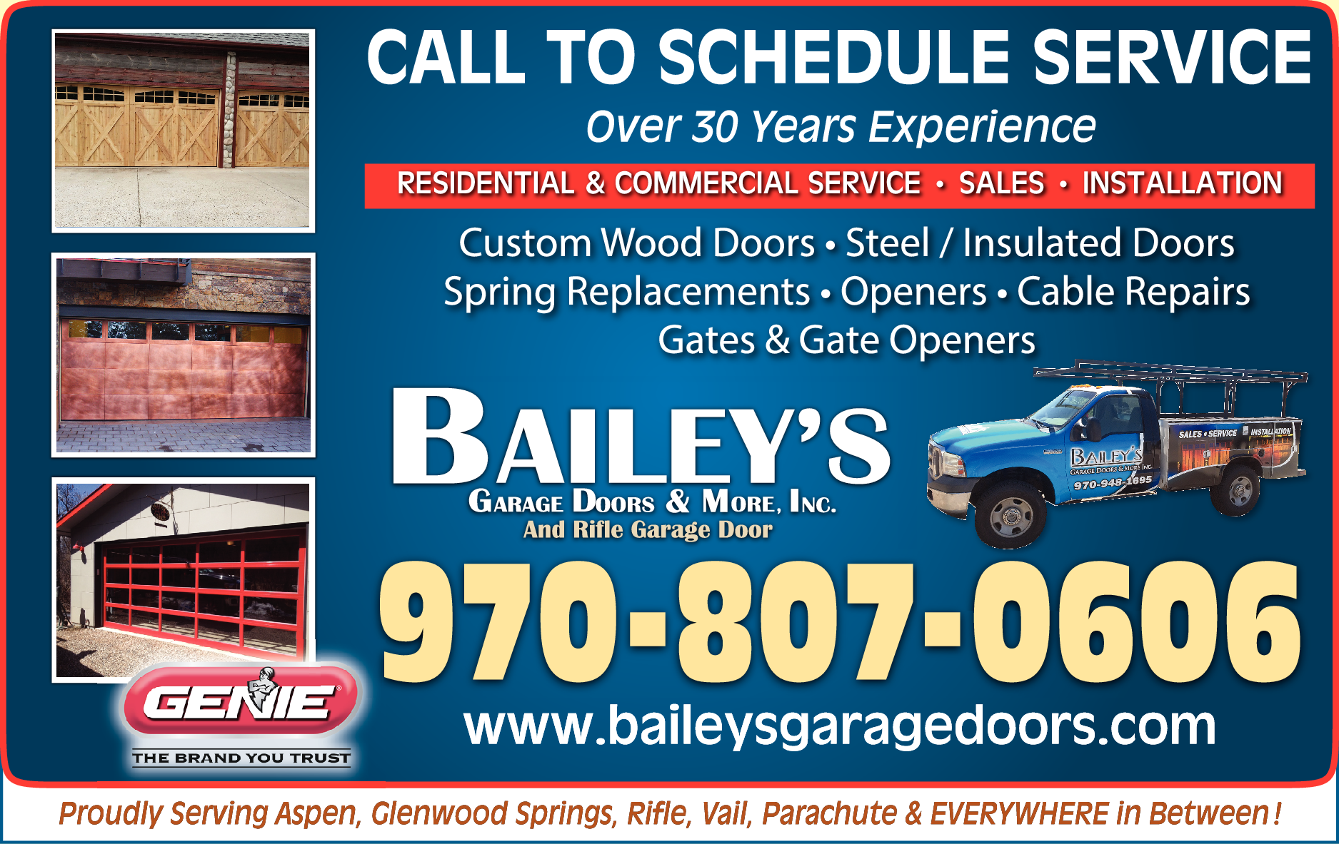 Names and Numbers Verified Garage Doors & Openers Garage Doors & Openers - Repair & Installation Home Improvement ServicesJeff Bailey, president & owner of Bailey's Garage Doors & More Inc. has over 28 yrs of sales and service experience in residential/commercial garage door field. B.G.D specializes in sales, service and installation of steel and custom wood doors. Jeff recently welcomed Rifle Gara…