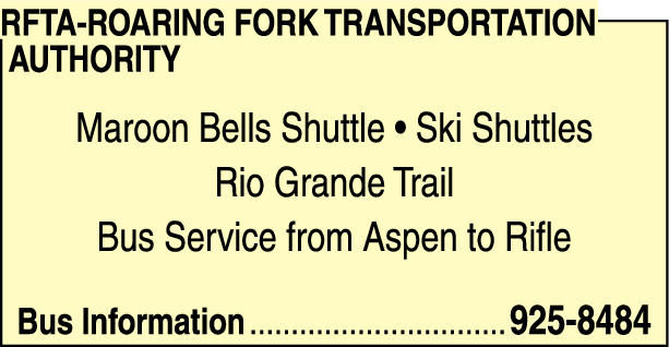 Names and Numbers Verified Bus Lines Transportation ServicesRFTA provides bus and mobility services connecting communities throughout the Roaring Fork Valley. We offer convenient and sustainable transportation options, including local and regional routes, bike share, and specialized services. RFTA aims to reduce congestion, promote envi…