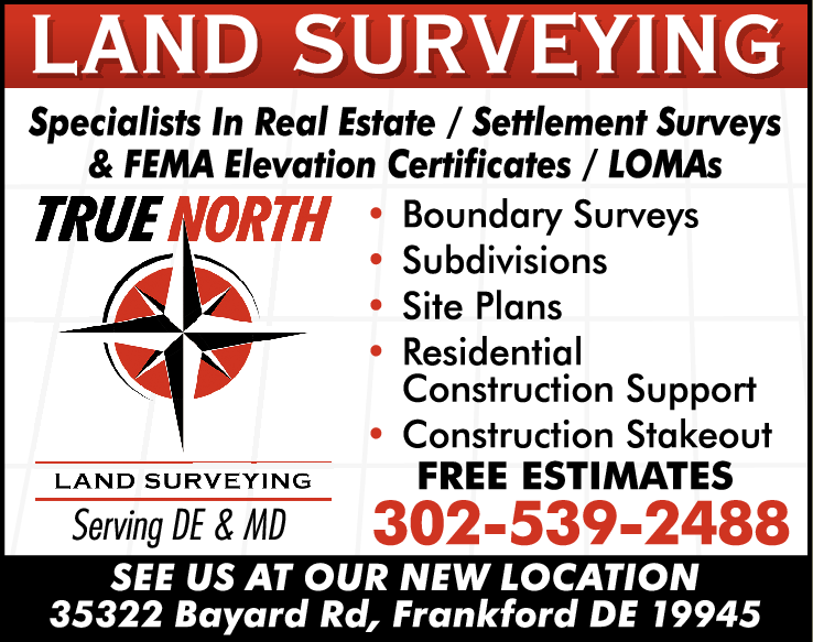 Names and Numbers Verified Land Surveyors Engineering Surveys SurveyorsTrue North Land Surveying is a specialized business based in Frankford, Delaware, serving Sussex County and surrounding areas. We are a team of expert professionals who specialize in a range of land surveying services, including Real Estate and Settlement Surveys, FEMA Elevation…