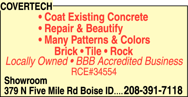 Names and Numbers Verified Concrete Repair & Restoration Concrete Contractors Concrete - Decorative DrivewaysReed's Concrete and Construction specializes in decorative concrete including stained concrete, stamped concrete, concrete resurfacing and concrete polishing in the Caldwell, New Plymouth, Star, Eagle, Nampa and Boise, ID areas. We ensure your satisfaction from the planning and …