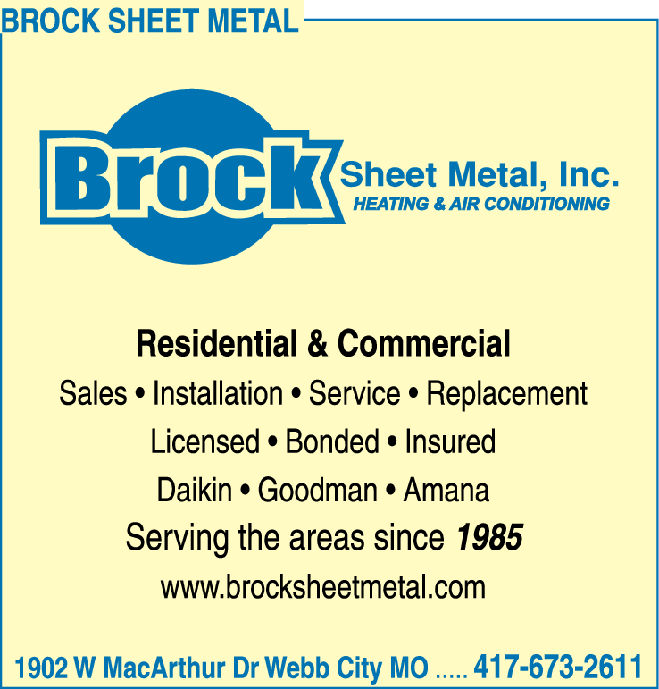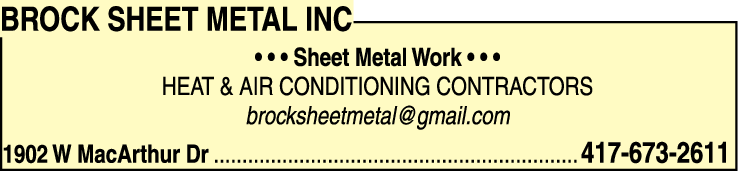 Names and Numbers Verified Air Conditioning Contractors Furnaces Heat Pumps Heating ContractorsBrock Sheet Metal, Heating & Air Conditioning, our goal is to provide our customers with top-notch services and quality HVAC systems that will last. We provide many heating and cooling services, including estimates, repairs, installation, preventive maintenance, and much more! …