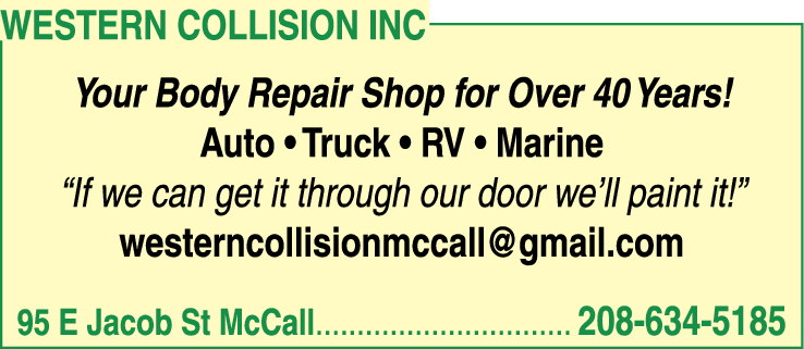 Names and Numbers Verified Automobile Body Repairing & Painting Automobile Bumpers, Bumper Guards & Grilles Boat Repair & MaintenanceWestern Collision Inc is a well-established body repair shop that has been serving customers for over 40 years. Located at 95 E Jacob St in McCall, our team of experienced professionals offers a range of repair services for various vehicles, including marine, RVs, autos, and tru…