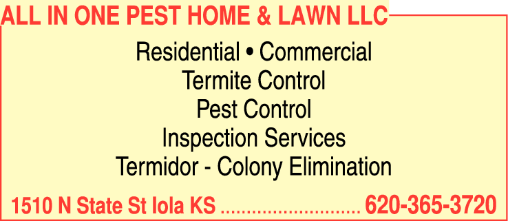 Names and Numbers Verified Pest Control Services Lawn Care & Maintenance Termite Control Homes Custom DesignedHere at All In One, we are dedicated to providing quality service in an ever-changing world. Termites, ants, weeds, haven't changed and are still the same nuisance. We still offer our interior services but in addition, we have added exterior-only pest control services. Our aim i…