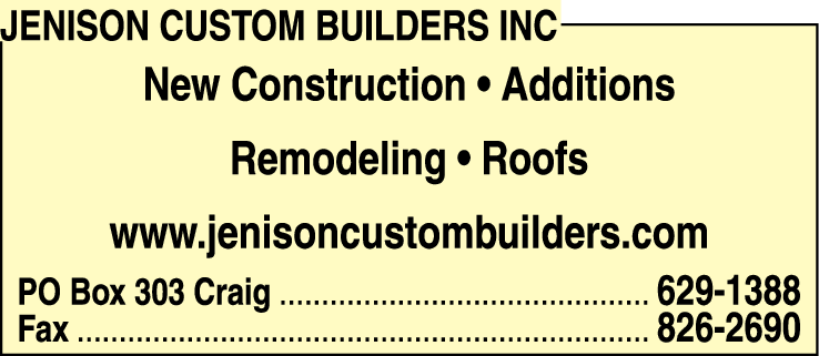 Names and Numbers Verified General Contractors Roofer Roofing Contractors BuildersJENISON CUSTOM BUILDERS INC is a construction company based in Craig, offering a wide range of services including new construction, additions, remodeling, and roofs. With a strong commitment to providing high-quality craftsmanship and excellent customer service, JENISON CUSTOM B…