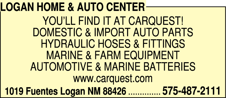 Names and Numbers Verified Hardware Stores New Automobile Parts & Supplies Home Centers Hydraulic Hose - Couplings & FittingsLogan Home & Auto Center, an authorized Car Quest dealer, is a comprehensive retail & auto parts store located in Logan, NM, providing a wide range of products and services to meet the needs of homeowners and automotive enthusiasts alike. Our store features a diverse selection o…
