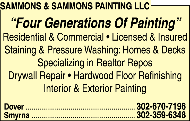 PaintersSammons Arden Sr Painting Contractor from Dover, DE. Company specialized in: Painters. Please call us for more information - (302) 492-8620