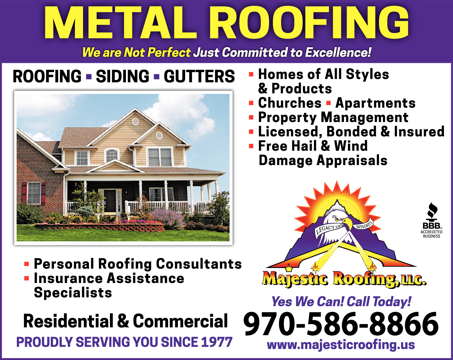 Names and Numbers Verified Roofer Gutters & Downspouts Metal Roofing & Siding Roofing ContractorsThank you for considering Majestic Roofing. We appreciate the opportunity to represent you with respect to your roofing needs. As a contractor, we feel an obligation to educate you so that your decision is one you can feel comfortable making. Customer service is a concept we fee…