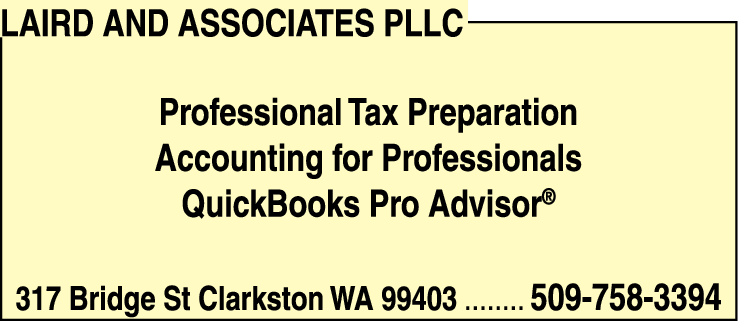 Names and Numbers Verified Payroll Services Tax Return Preparation AccountantsLaird and Associates PLLC is a reputable professional accounting and tax preparation firm located at 317 Bridge St, Clarkston, WA 99403. With a strong focus on providing top-notch financial services to professionals, we specialize in professional tax preparation and are proud t…
