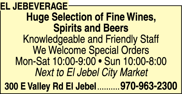 Names and Numbers Verified Beer, Ale & Wine - Retail Liquor Stores Wines - RetailJebel........970-963-2300 El Jebeverage is a premier destination for those seeking a wide range of high-quality wines, spirits, and beers. Located conveniently next to El Jebel City Market on 300 E Valley Rd, El Jebeverage offers a huge selection of fine beverages to cater to ev…