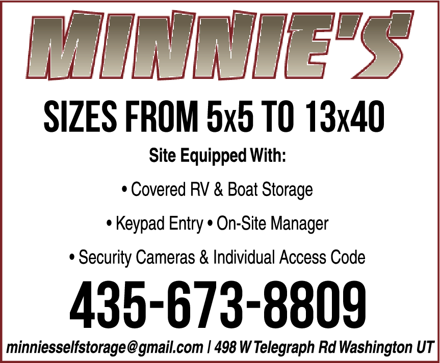 Names and Numbers Verified Boat Storage Recreational Vehicles & Campers - Storage Storage ServicesProtect your belongings in a secure storage space. Minnie's Storage goes above and beyond when it comes to maintaining our storage facilities and ensuring that your items are stored safely. Enjoy easy access to your belongings while keeping them protected with 24 hour video surv…