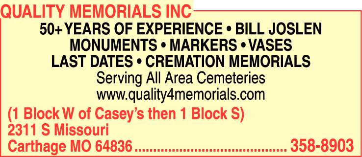 Address:Carthage, MOPhone:(417) 358-4226 -