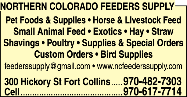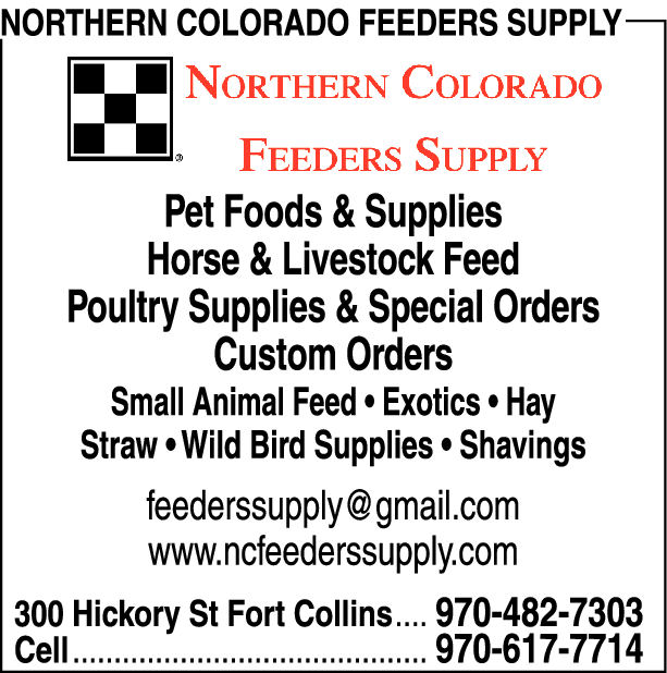 Names and Numbers Verified Feed Dealers Horse Furnishings Pet Supplies & FoodsCollins....970-482-7303 Northern Colorado Feeders Supply is a specialized pet and livestock feed store located in Fort Collins. We offer a wide range of high-quality pet foods and supplies, ensuring that you can provide your furry friends with the nutrition they need. Whether…