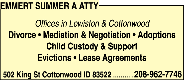 Names and Numbers Verified Attorneys Adoption Attorneys Family Attorneys Family Law AttorneysSummer Emmert is an experienced family law attorney in Cottonwood, Idaho and has successfully represented clients for family legal needs since the year 2000. She and her staff are knowledgable, personable and dedicated to helping clients resolve their immediate and long term le…