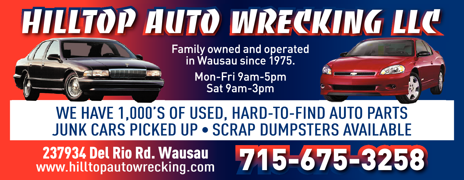 Names and Numbers Verified Automobile Parts & Supplies - Used & Rebuilt Automobile Wrecking Salvage Yards Scrap Metals Processing & RecyclingDo you need your old, junk vehicle removed from your property? ...If so, contact Hilltop Auto Wrecking in Wausau, Wisconsin. We are a locally owned, full-service auto salvage business, that has been serving the area since 1975. If you are looking for high quality used auto …