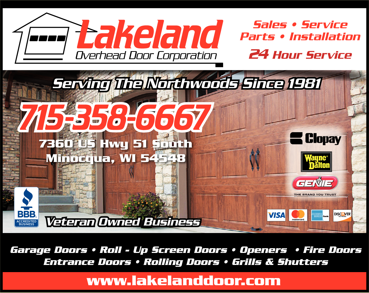 Names and Numbers Verified Door suppliers Garage Doors & Openers Gates & Operating Devices Overhead DoorsFor over 40 years Lakeland Overhead Door Corporation has provided the Central & Northern Wisconsin, and Upper Michigan areas with excellence in residential & commercial garage door sales, service, installation, and maintenance. You can rest assured we will meet and exceed your g…