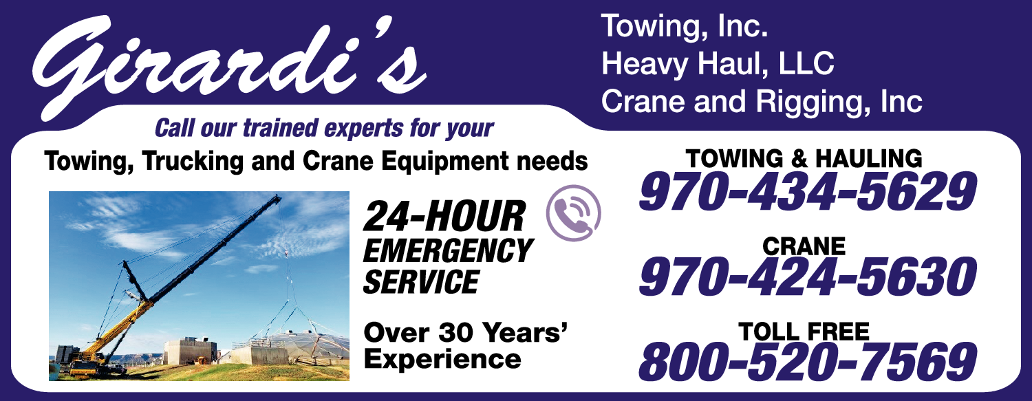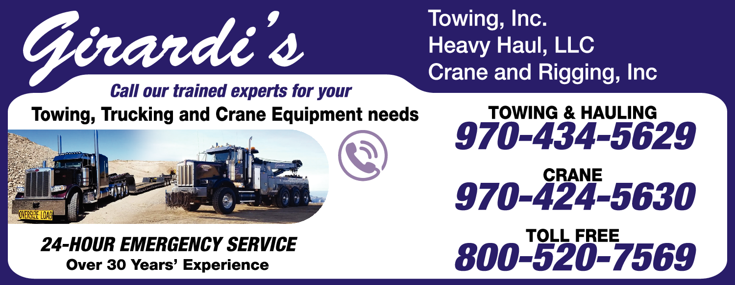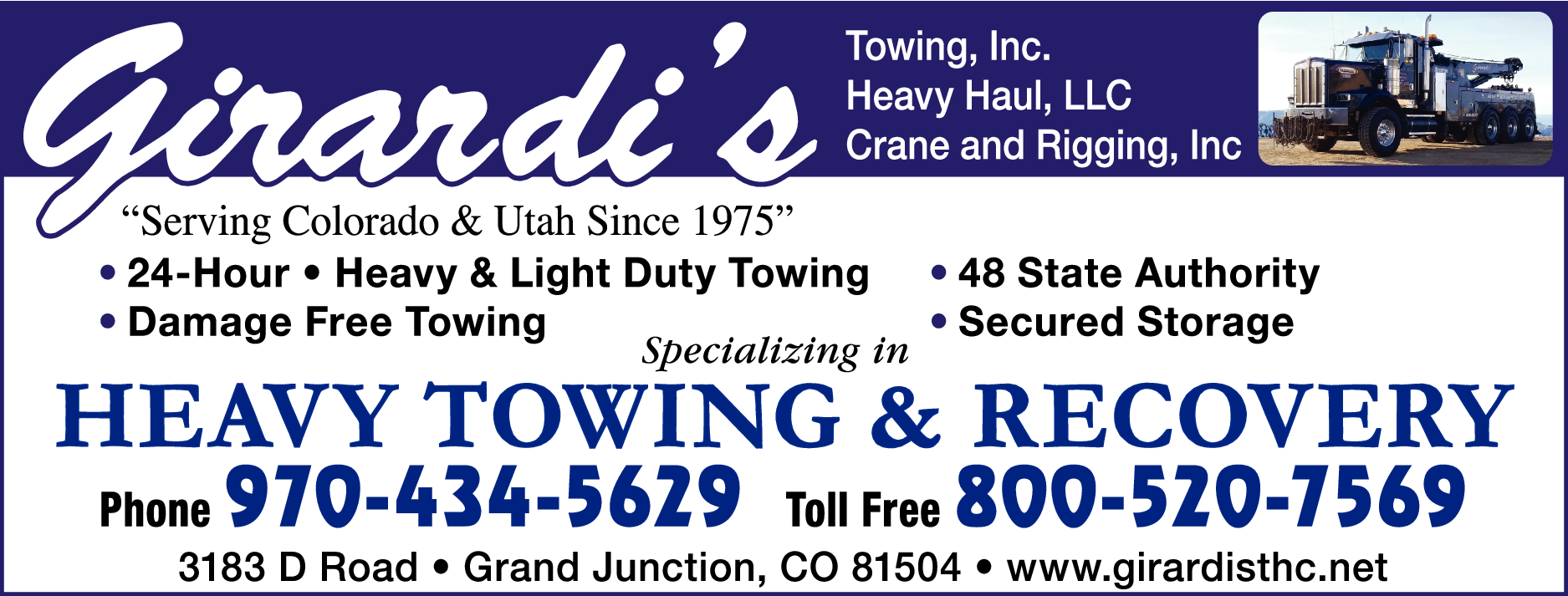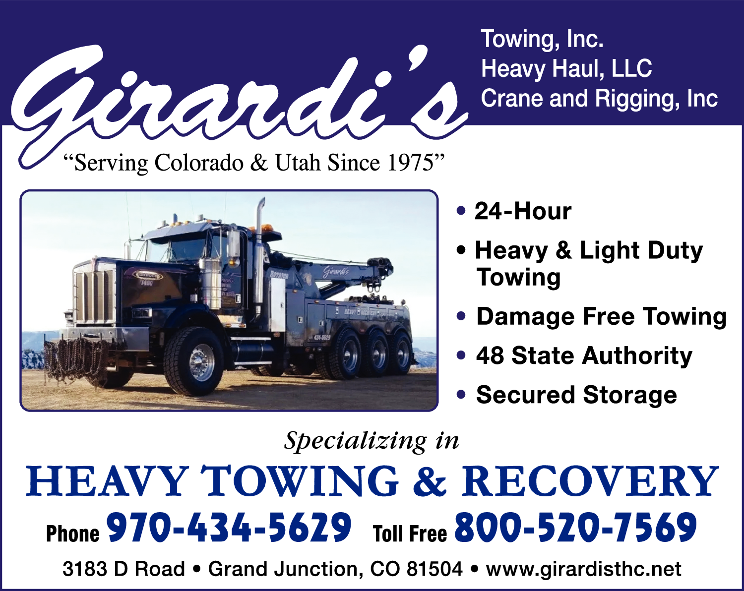 Names and Numbers Verified Automotive Towing Auto Towing Towing Equipment Heavy Hauling TruckingWhen you're looking for dependable crane service in Grand Junction, CO, look no further than Girardi's Towing Inc! We have over 30 years of experience.