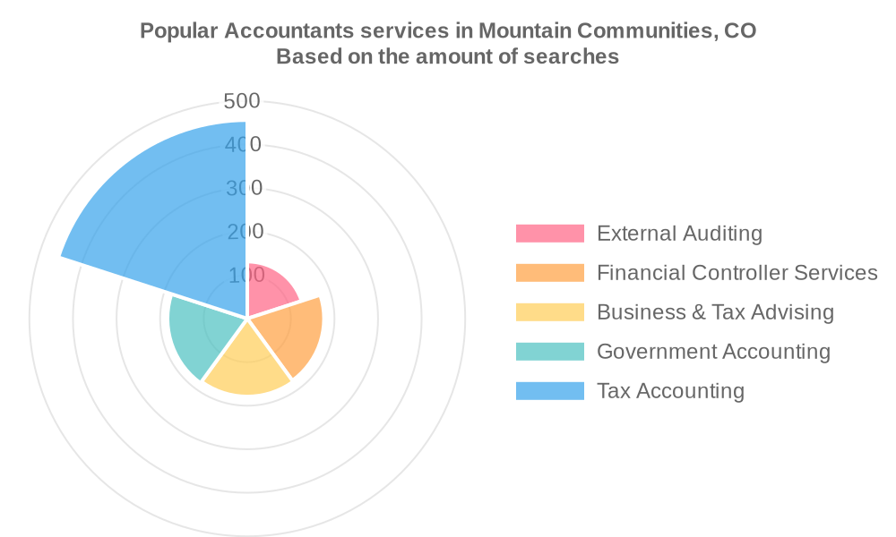 According to data.gov the minimum accountants costs for homeowners in Mountain Communities, CO is $144, the average is $259 and the maximum is $458.