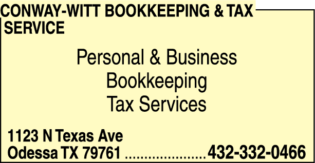 Names and Numbers Verified Bookkeeping Service Tax Return PreparationConway-Witt Bookkeeping & Tax Service delivers accurate, reliable financial solutions for small to medium-sized businesses. We offer comprehensive bookkeeping, payroll, and tax preparation services, tailored to your specific needs. Focus on your business; we'll handle the numbe…
