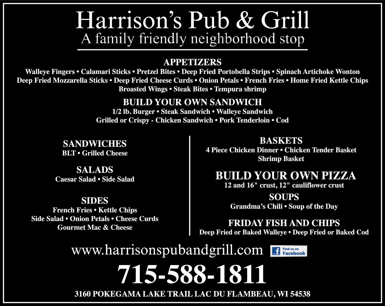 Names and Numbers Verified RestaurantsOur business, Grandma's Pub & Grill, offers a wide variety of delicious food options for our customers to enjoy. We specialize in soups, appetizers, salads, Friday fish and chips, build-your-own pizzas and sandwiches, as well as a selection of sides. For those looking for a t…